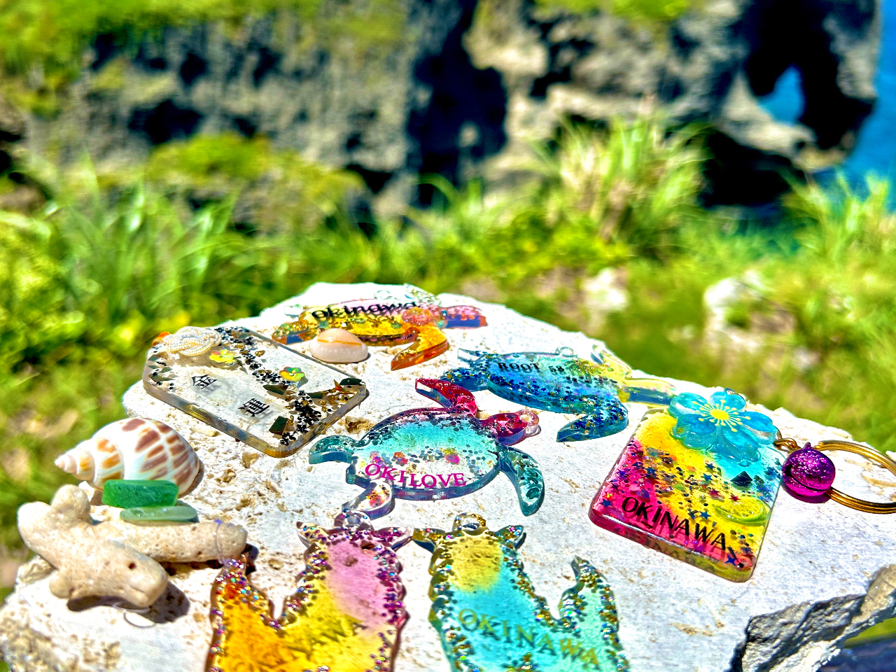 - 【万座毛 当日予約可能♪】キラキラレジンオリジナルキーホルダー作り!お好きなパーツ・ラメを使い世界に1つだけのキーホルダーを旅行の思い出に♪