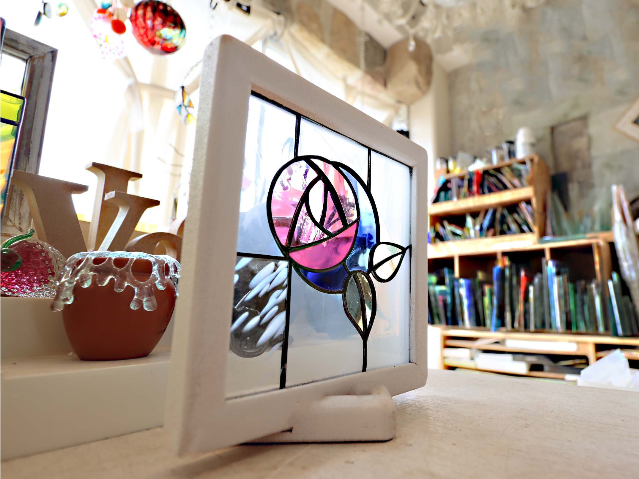 - ステンドグラスでフォトフレームや小物入れ、窓飾りなどが作製できるプランです。