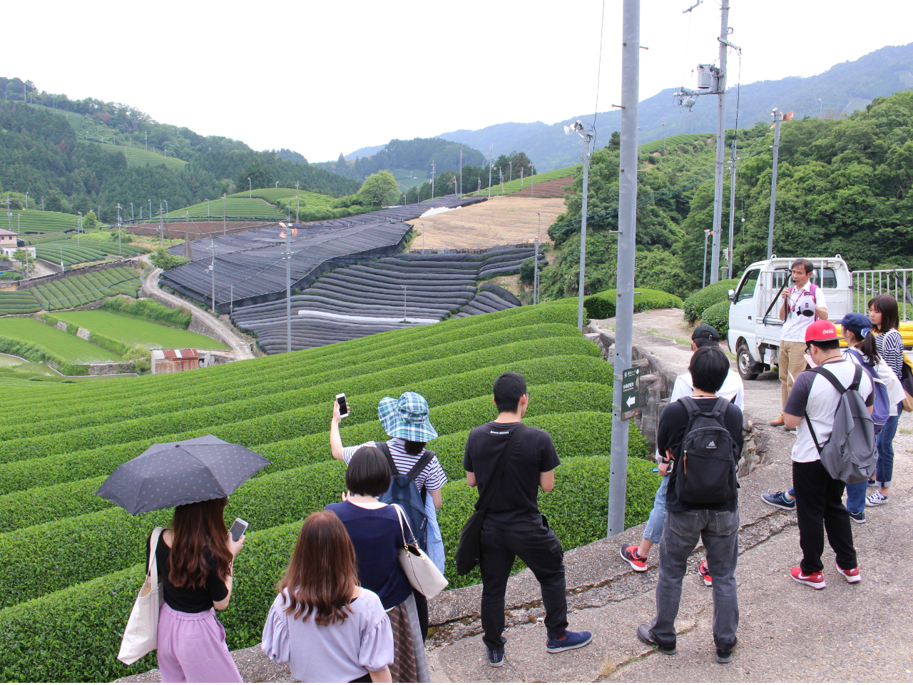茶畑景観の美しさから「茶源郷」とも呼ばれている和束町で、約1時間のガイド付き茶畑ウォーキング。