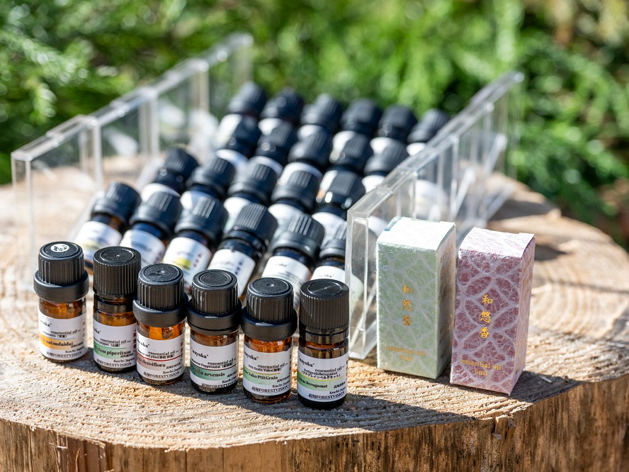 ひとつエッセンシャルオイルお持ち帰りプラン♪精油「和悠香wayuka」工房見学ツアー&エッセンシャルオイル約80種試香体験♪テラスから仁淀ブルーを眺めながら〜