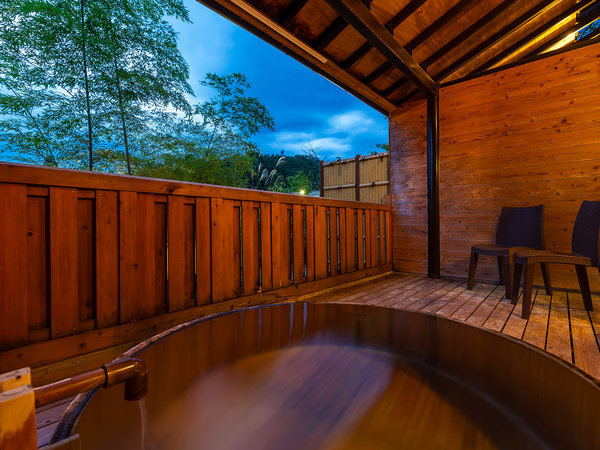 | 風呂利用条件 | ★露天風呂は各客室にある天然温泉100%のテラス露天風呂のみ(内風呂なしシャワー付) ★貸切露天風呂「星空の湯」あり。有料。 ★日帰り温泉「ほの香」時間帯により利用可。 |