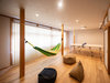 足湯付きダイニング、卓球台やハンモックのあるプレイルーム、ボードゲームや大画面プロジェクターなど楽しさ満載!