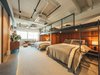 三角形をモチーフにしたデザインに、テラコッタの温もりが調和し、客室に心地よい安定感をもたらします。高い天井が生む開放感は、まるでペントハウスのような贅沢空間。渋谷の中心で特別な滞在を。