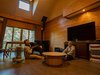 三角屋根と三角の眺望窓が特徴的な一棟貸しのコテージ。懐かしさと温かみを感じる室内で、別荘のオーナー気分でお過ごしいただけます。3000m級の山々に囲まれた里山に位置し、四季折々の自然が広がります。