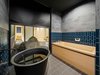 伝統の風情と利便性が調和する一棟貸切宿。浴室から望む石庭、重厚な梁、意匠を凝らした水回り