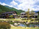 | めいほうスキー場のお膝元。緑多い広大な敷地に建つ料理旅館 |