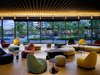 ロビーからは大阪市内のビル群や通天閣を背景に緑の天王寺公園を眺望可能。