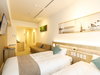 デザイン性の高い客室は、全室バス・トイレ別!ベッドは心地よい眠りを提供するシェララフィア社製「ゲルテックマットレス」、ゆったりサイズの140p幅を採用。ウェルカムドリンクサービス15時-21時。