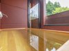 川のせせらぎを背に、木々に囲まれた階段が玄関まで誘導します。