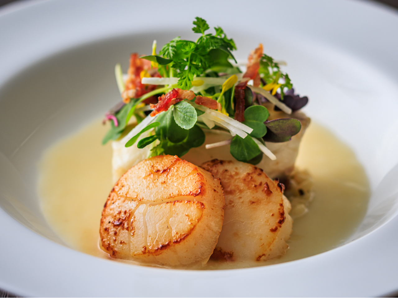 - 《冬のハーフブッフェ ランチ》◆白身魚と帆立貝 海藻の白ワインリゾットとほんのり柚子の香るナージュソース