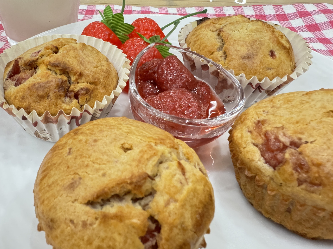 - いちごジャムたっぷり!米粉のマフィン作り