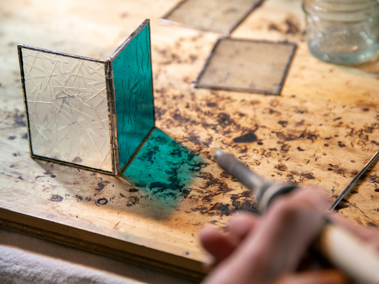 - ステンドグラス作り体験♪ 可愛らしいミニランプor4面ケース いずれかお好きな方をお作りいただけます! ガラスがだんだん形になる◎物をつくる楽しさを味わっていただけますよ!