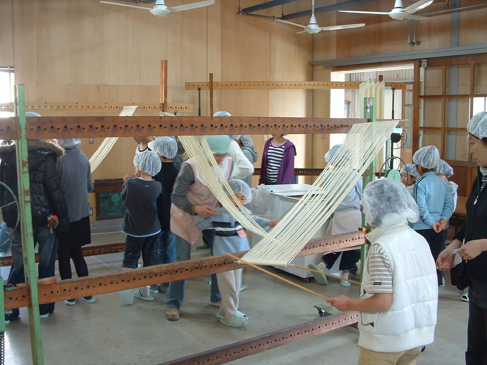 - 見て、触れて、確かな実感。手延べそうめん作りの技と味にふれるひと時。 工程の見学と箸分けを実際に体験、日本の伝統食品の良さを実感。 工場直営の食堂では、生そうめん等も味わえます。併せてご予約を。