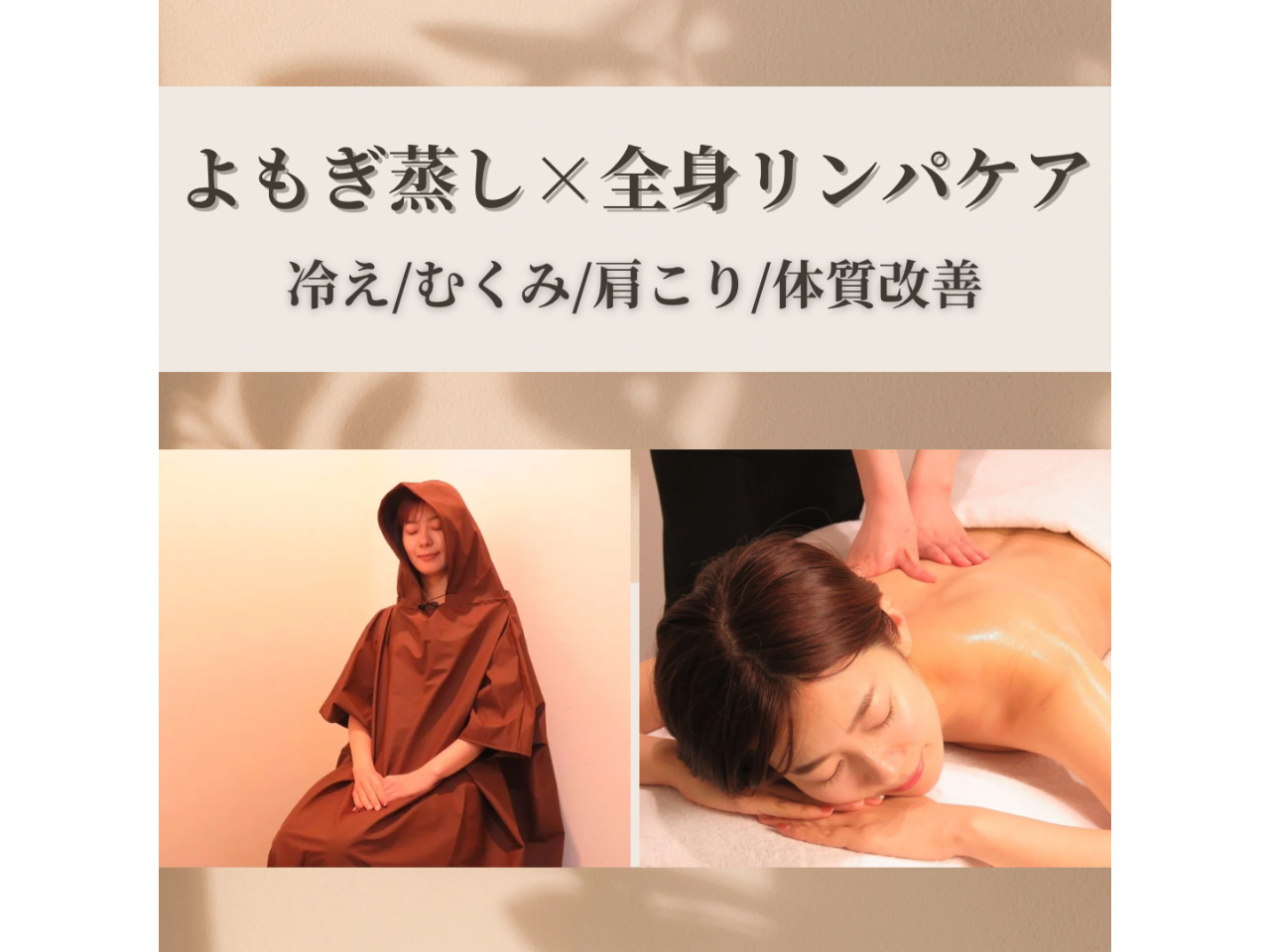 - 【女性】冷え改善/巡り整う温活コース♪よもぎ蒸し30分+リンパマッサージ50分