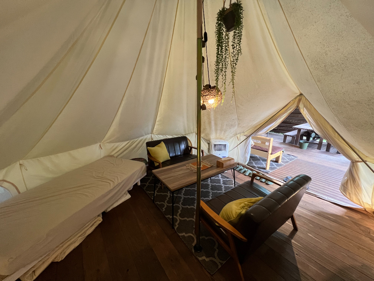 - テントサイトとお部屋が一緒に使えます。アウトドア体験