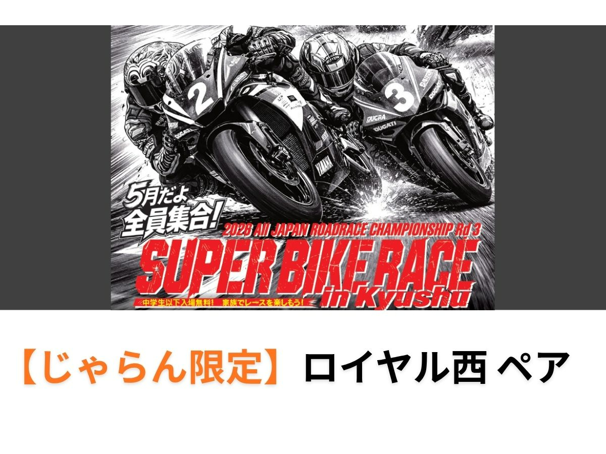 - 《じゃらん限定25組》ロイヤルルーム2日間通しペア観戦券【2026 MJF全日本ロードレース選手権シリーズ第3戦 SUPER BIKE RACE in KYUSHU】【5月30〜31日開催】
