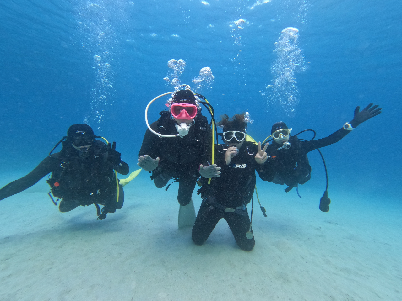 - 泳げない方でもご安心下さい!ショップスタッフが完全サポート!サンゴが一番きれいに見える水深で体験ダイビングを実施します。最初は水面で練習をしてから水中に入っていくので、安心してダイビングが楽しめます!
