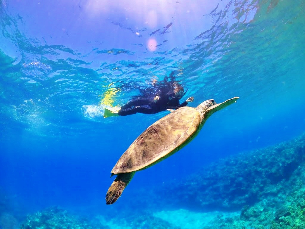 - 海亀シュノーケリング&【幻の島】ユニの浜ツアー☆ドローン空撮無料特典付き☆