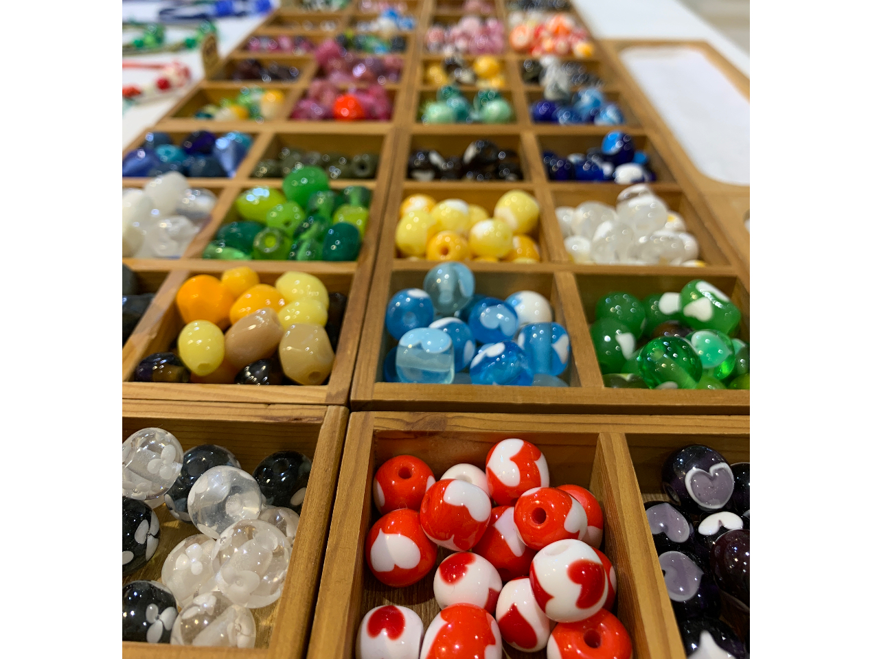- 神の島、浜比嘉島で作るとんぼ玉アクセサリー♪ 全て浜比嘉島のとんぼ玉工房緑の風で作った玉を使用します! 小さなお子様や初心者の方も大歓迎です。 フリーサイズの紐仕上げ体験できます。