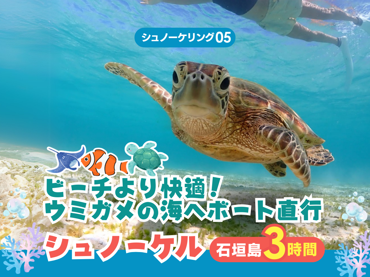 - 【石垣島・ボートシュノーケル・PM半日】PM限定!ウミガメ探しのシュノーケリング!☆写真データ無料&器材レンタル付☆
