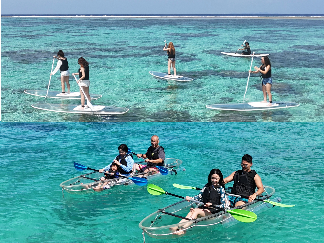 - 【沖縄・今帰仁】団体専用★クリアSUP&クリアカヤック体験|7〜14名グループ割|一律6,500円|ドローン空撮割引