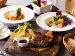 - 大きな窓から差し込む日差しが心地よい開放的なカジュアルレストラン。新鮮なお野菜をたっぷりお召し上がりいただけるオードブルとメインディッシュ、デザート、コーヒーまでついたじゃらん限定特別プランです。