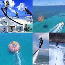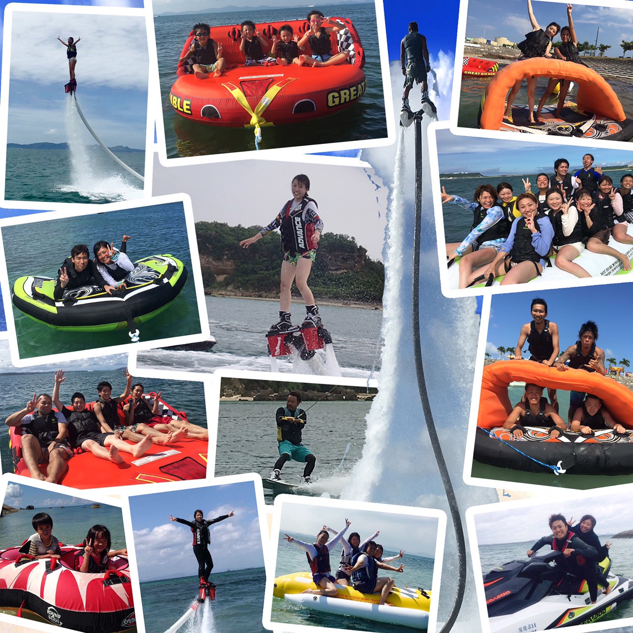 - ♪空飛ぶ体験がきっとクセになる!大人気フフライボード♪ ♪海面を滑る感覚が「やみつき」になるウェイクボード♪ ♪皆大好きマリンチューブ♪ ♪ジェットスキー体験