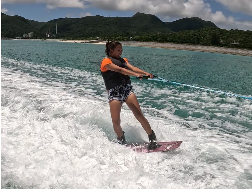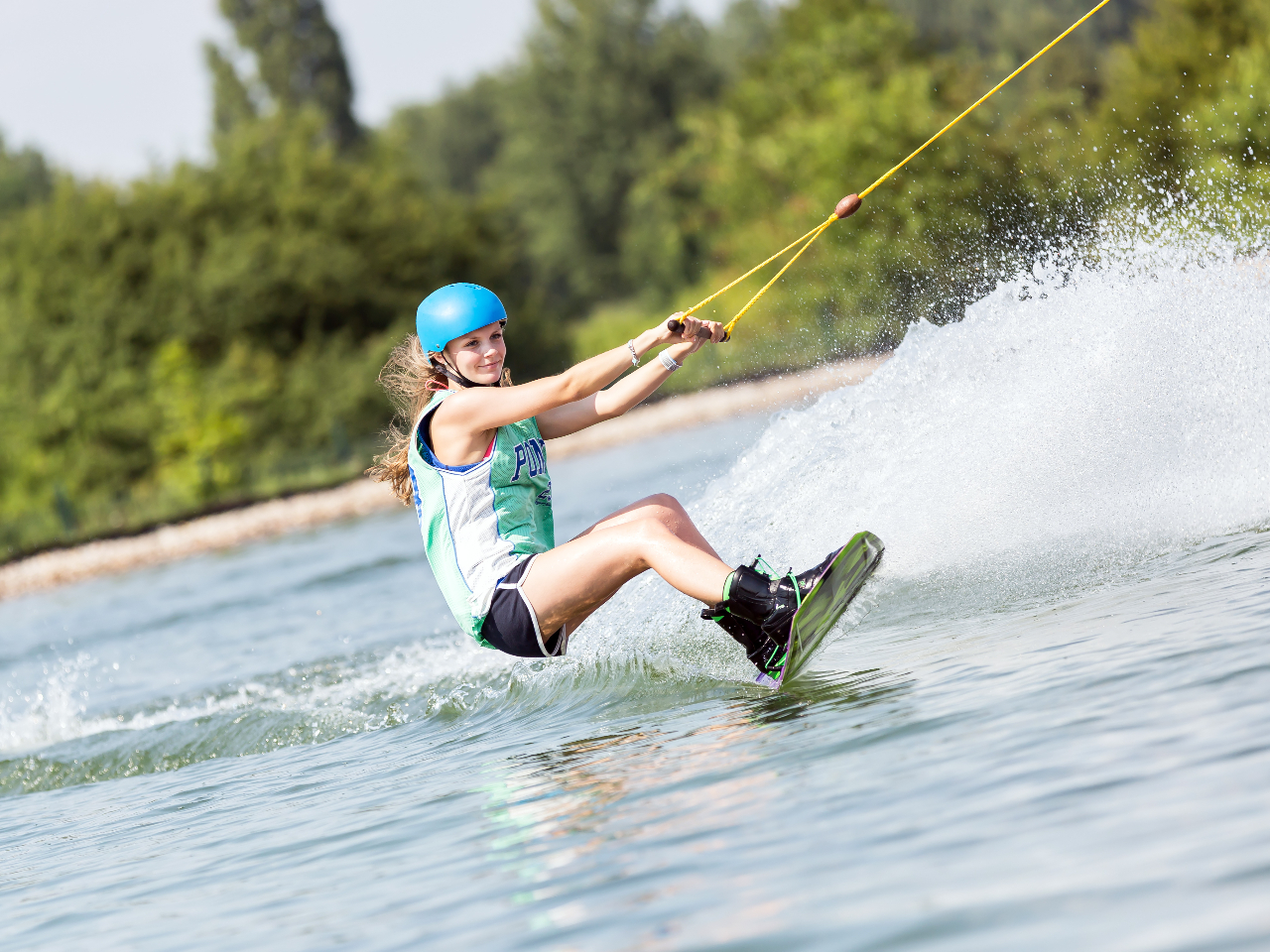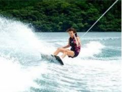 - 板に乗ってモータボートに取り付けたロープを握り、ボートに引かれながら水上を滑走するスポーツです。 ジャンプやターンなど技の出来映えのポイントで勝敗を争います。 子供から大人まで楽しめるスポーツです!