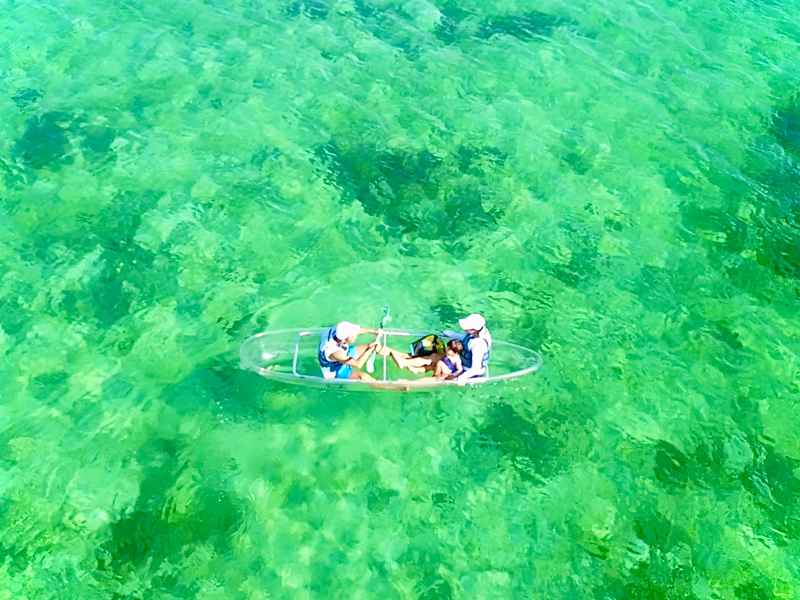 - ファミリーにお勧め シーカヤックなのにシュノーケリングのような感覚! 船の全てが透明な希少な「スケルトンカヤック」でお手軽に熱帯魚ウォッチング!!