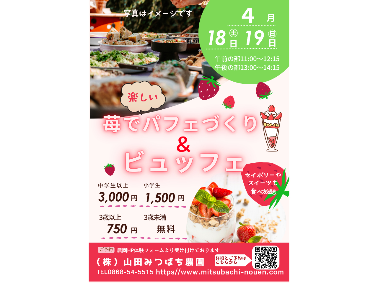 - 【4月18日・19日】〜苺でパフェづくり&ビュッフェ〜50名様限定!!