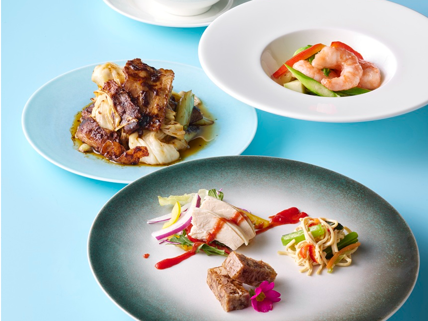 - 月替わりのおすすめコース。「イタリアンチャイニーズ」がデザインコンセプトの落ち着いた店内で、優雅なランチタイムはいかがですか。