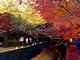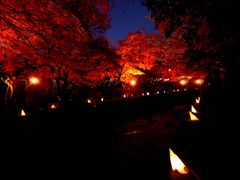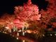 夜になるとライトアップされ、紅葉がさらに赤く燃え輝く。