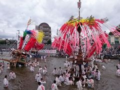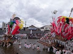 会場付近だけでなく、伊田駅商店街周辺もたくさんの出店が並んでいました。川の中に入って山笠を豪快に揺らす川渡りは見ごたえがありました。