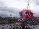 川の渕にあるたくさんのアドバルーンが客席に向かって来そうなほど風が強かったです。そのため例年よりは少しお客さんが少ないように感じました。お祭りはとても盛り上がっていて、間近で観たので臨場感がありました。