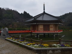安倍文殊院にある施設。池の上に造られており、別世界にあるような感じを受ける。この期間は冬の寺宝展が開催されている。