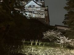 生け花の彩りと灯籠の灯りが織りなす和みの世界の中で,高知城天守には桜舞う圧巻のプロジェクションマッピング。