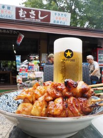 その一画にある売店・むさしでは、絶品の焼き鳥や、みそおでん、