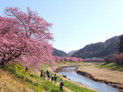 青野川沿い約2kmに植えられた河津桜800本が、例年2月上旬から3月上旬にかけて、見頃を迎えます。菜の花も楽しむことができる「みなみの桜と菜の花まつり」では、菜の花ドアや菜の花迷路などが設置され、大勢の人で賑わいます。ライトアップされた幻想的な夜桜を見ることもできます。
