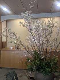 ロビーの桜は啓翁桜(けいおうざくら)、ご来館の際はぜひお花見をお楽しみください。