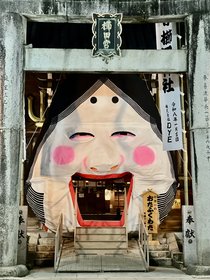 - 高さ約5メートルの「お多福面」で知られる櫛田神社の節分祭り。大きなお多福面の口を通り参拝することで、商売繁盛や家内安全のご利益があると言われています。1月15日から2月15日まで設置。