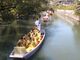 お内裏様とお雛様、雅楽の演奏者、赤い着物の子供たちを乗せた舟が、水路に渡したさげもんの下をくぐり、柳や桜に縁取られた水路をゆっくりと進んでいき、とても雅でした。