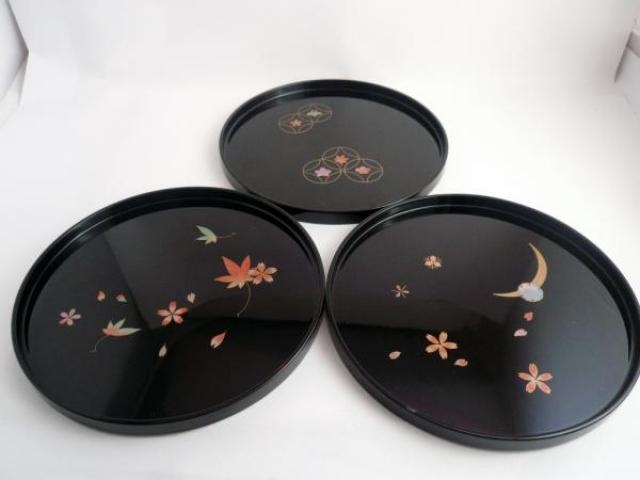 創業200年以上の老舗漆器専門店、能作で、蒔絵の体験が楽しめます。下絵が描かれた丸盆に、代用漆を塗り、金、銀、朱など、配色を考えながら粉を蒔き、筆で丁寧になじませていきます。配色によって出来上がりの印象が変わります。