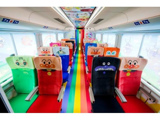 アンパンマンとなかまたちが満載の列車が四国を駆け抜けます。岡山・高松から松山間は、鮮やかな虹のデザインが印象的な「予讃線8000系アンパンマン列車」が8両、松山から宇和島間は、アンパンマンとばいきんまんの大きな顔が描かれた「予讃線宇和海アンパンマン列車」が2両運行されます。岡山から高知間は、「土讃線あかいアンパンマン列車」と「土讃線きいろいアンパンマン列車」が4両ずつ(曜日により3両)運行されます。「予讃線8000系アンパンマン列車」の1号車16席と「土讃線あかい・きいろいアンパンマン列車」の1号車24席では、車内がアンパンマンとなかまたちで彩られた限定の指定席「アンパンマンシート」が人気です。