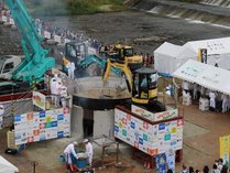 - 直径6.5メートルの「三代目 大鍋・鍋太郎」で「移動式クレーン仕様機・バックホー」を使い、約30,000食分を超える食材を一気に調理する迫力ある光景は必見。 まさに“日本一”の名にふさわしいイベントです。