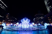 「スズラン」や「雪の結晶」など、北海道を象徴するモチーフを光のオブジェで表現。