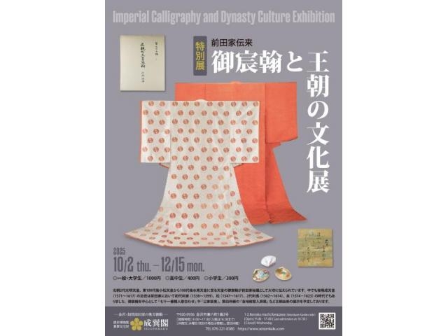 | 名称 | 特別展「前田家伝来 御宸翰と王朝の文化展」(まえだけでんらい ごしんかんとおうちょうのぶんかてん) |