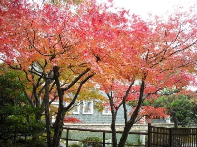 日本六古窯の一つに数えられる越前焼のふるさと越前陶芸村では、例年10月下旬から、12万平方mの広大な公園のあちこちで、紅葉を見ることができます。公園内には、岡本太郎やイサム・ノグチらのアート作品が点在し、美しい自然とともに楽しめます。越前焼に関するさまざまな施設が揃う村内では、陶芸教室に参加したり、お気に入りのやきものを探したりと、さまざまな方法で越前焼を堪能できます。福井県陶芸館ロビーから眺める幽石庭や、茶苑の枯山水庭園は、紅葉の美しいスポットとして人気です。