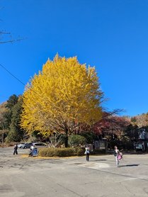 入口の大イチョウは真っ黄色。
