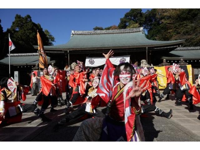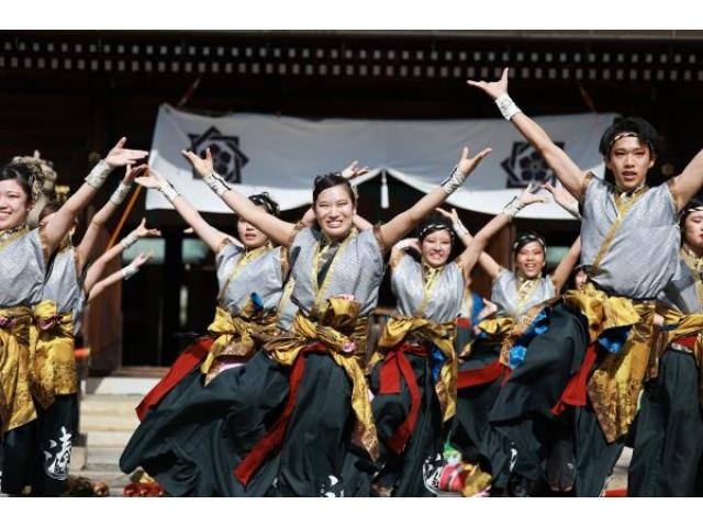 奉納演舞「龍馬よさこい」が、京都霊山護国神社境内と京都市内各所の特設会場で行われます。坂本龍馬のふるさと高知県の文化である「よさこい鳴子踊り」と、京都の文化である「京炎 そでふれ!」をはじめ、中国地方で生まれた「うらじゃ」など、個性豊かな衣装を纏った学生チームが全国から参加し、楽曲や踊りを披露します。「慎太郎音楽祭−Shintaro Music Festival−」も同時開催され、学生アカペラ団体が会場いっぱいに美しいハーモニーを奏でます。