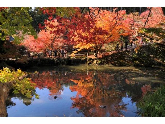南北朝時代に足利義満により創建された名刹、円通寺は、青垣町の高源寺、山南町の石龕寺とともに「丹波もみじ三山」の一つに数えられています。例年11月上旬から12月上旬にかけて見頃を迎え、朱や黄金など色鮮やかな紅葉が広い境内を覆い、水面を染める絶景が望めます。テントブースでは、お土産品や地元特産物などが販売されます。期間中はさまざまな催しが行われるほか、9日・16日・23日のイベント日には、氷ノ川太鼓や音楽の演奏が披露されます。